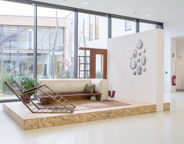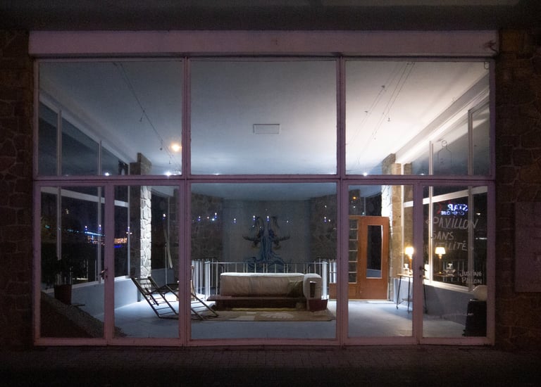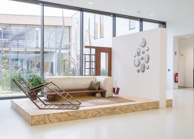 Exposition personnelle du 15 novembre 2019 au 15 août 2020 - Pavillon Fourmarier, Chaudfontaine, Belgique - installation APPARTEMENT SANS UTILITé matériaux mixte - Commissariat: Guy Malevez