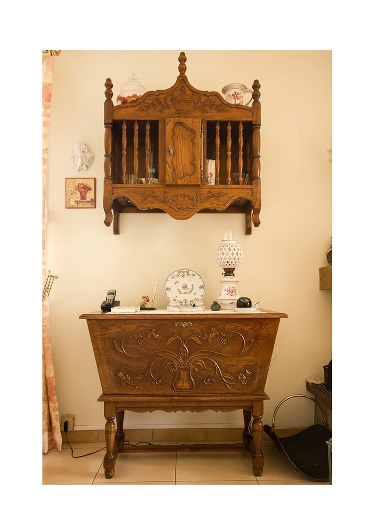 Cette série explore comment le mobilier et sa mise en scène témoignent d’un mode d’habiter spécifique. Le « mobilier intérieur » y prend un double sens : à la fois agencement physique d’objets et expression tangible de l’intériorité des habitants. Les meubles, leur disposition et leur usure révèlent la psychologie des personnes qui ont façonné ces espaces au fil du temps.