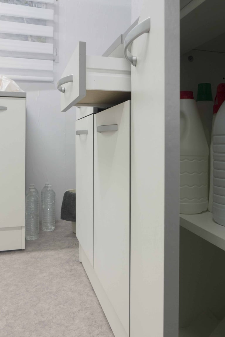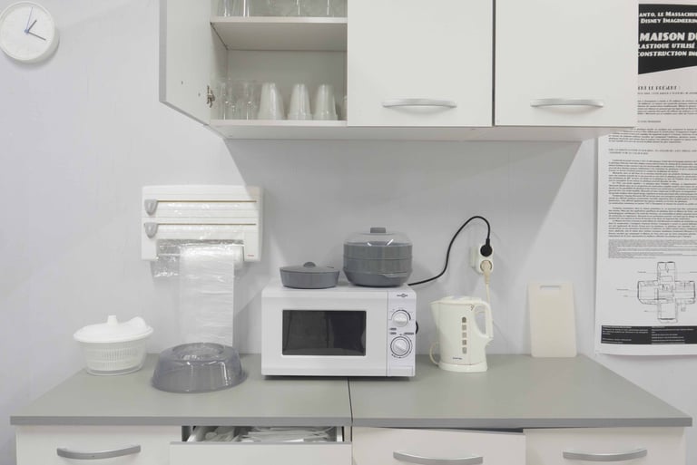 En contrepoint, « Retro Futuristic Home » présente une cuisine actuelle d’entrée de gamme, acquise dans des enseignes de grande distribution. Cet espace domestique, involontairement réduit à une esthétique neutre et standardisée (dominée par des tons gris et blancs dépourvus de toute fioriture) est immédiatement reconnaissa-ble pour de nombreux visiteurs qui peuvent y identifier les éléments de leur propre intérieur. L’installation révèle ainsi la troublante omniprésence du plastique dans notre quotidien. Elle met en lumière la standardisation et la banalisation de notre consommation de matières plastiques, soulignant comment ce matériau, autrefois symbole d’innovation futuriste célébré dans la publicité affichée, est désormais profondément ancré dans notre envi-ronnement le plus intime sans que nous en questionnions véritablement la présence.