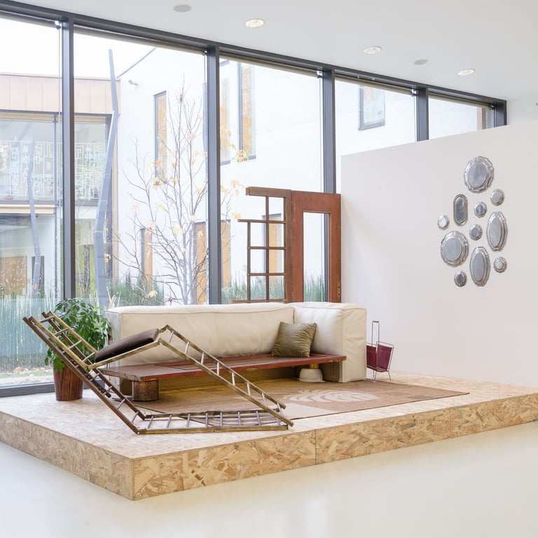 exposition collective - École d'art du Calaisis - installation APPARTEMENT SANS UTILITE matériaux mixte - série de photo PORTRAITS DE FAMILLE - commissariat : Welchrome - 2018/2019